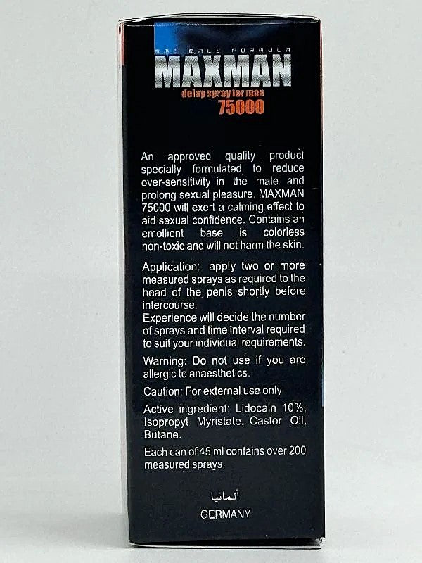 Unlock your full potential with Maxman Delay Spray, the ultimate solution for men seeking to last longer and satisfy their partners. Our clinically tested, natural formula helps delay ejaculation, increase stamina, and enhance intimacy.